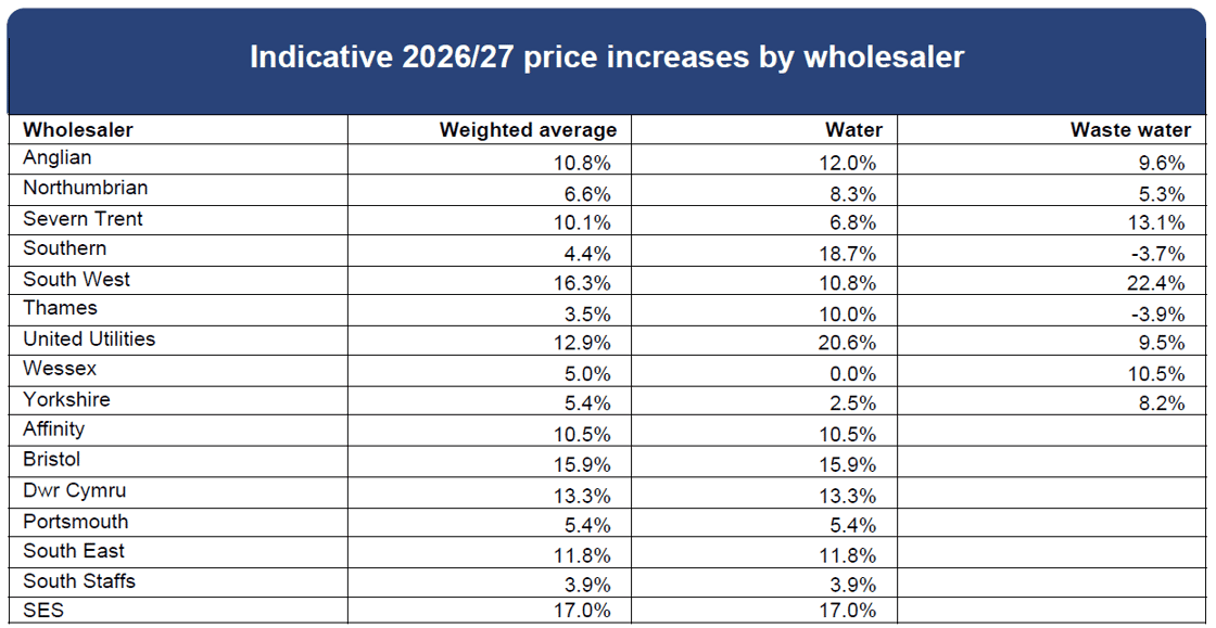 We have an update on indicative water rates price increases for 26/27.